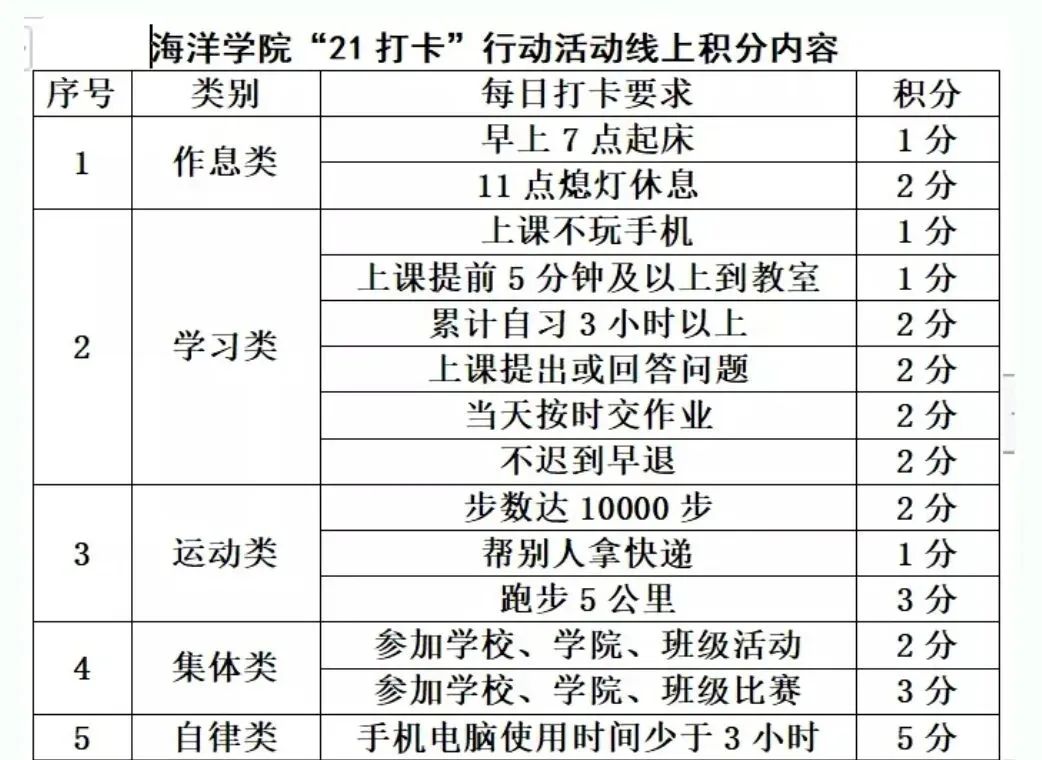 为激励养成良好生活学习习惯,娱乐城 连续第六年开展健康微积分打卡活动。通过关注健康的作息、良好的生活和学习习惯,每日的累积,让同学们切实关注自我,养成良好的作息时间和生活习惯,以身心健康的姿态去迎接每一天的学习和生活,逐渐成为一名自律自励的优秀大学生。