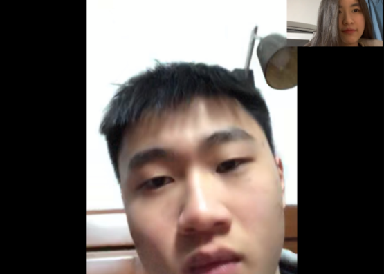 实践团成员陆佳莹为对接的中学生介绍冰球运动并且与他一起观看了冬奥冰球比赛的视频,共同为我国运动员加油,从中培养下一代中国青少年的爱国情怀。