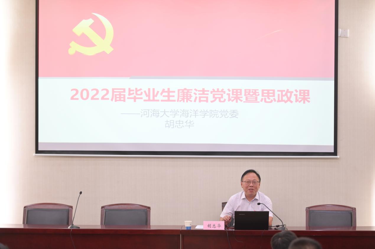 为进一步坚定毕业生理想信念,加强廉洁从业教育,涵养清廉之风,6月10日上午,娱乐城 2022届毕业生“廉洁党课暨思政课”活动在闻天馆113顺利开展。活动由娱乐城 党委书记胡忠华主讲,党委副书记吴昊主持,党委组织员阮雪琴、本科生毕业班辅导员赖颖、研究生辅导员刘彩英及2022届全体毕业生参加。