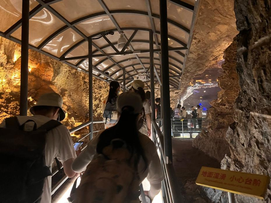 6.19日,同学们首先在到了南京猿人洞,老师为同学们讲解了古人类的进化,并参观了部分出土的化石,观察了天然形成的溶洞,重温了喀斯特地貌的相关知识。理论与实践的碰撞在同学们的心中激起阵阵波澜。接着我们来到了汤山地质博物馆,科普博物馆中陈列着各种各样的矿石,萤石晶簇、齿菊石、硅化木、方解石脉、微角石,老师们为同学们细心讲解各类矿石的特性,并提出问题,引导同学们进行思考;其中,吸引了很多同学的一个问题是“海百合是动物还是植物”,大家踊跃回答,老师耐心讲解,实践中的课堂一样精彩纷呈。