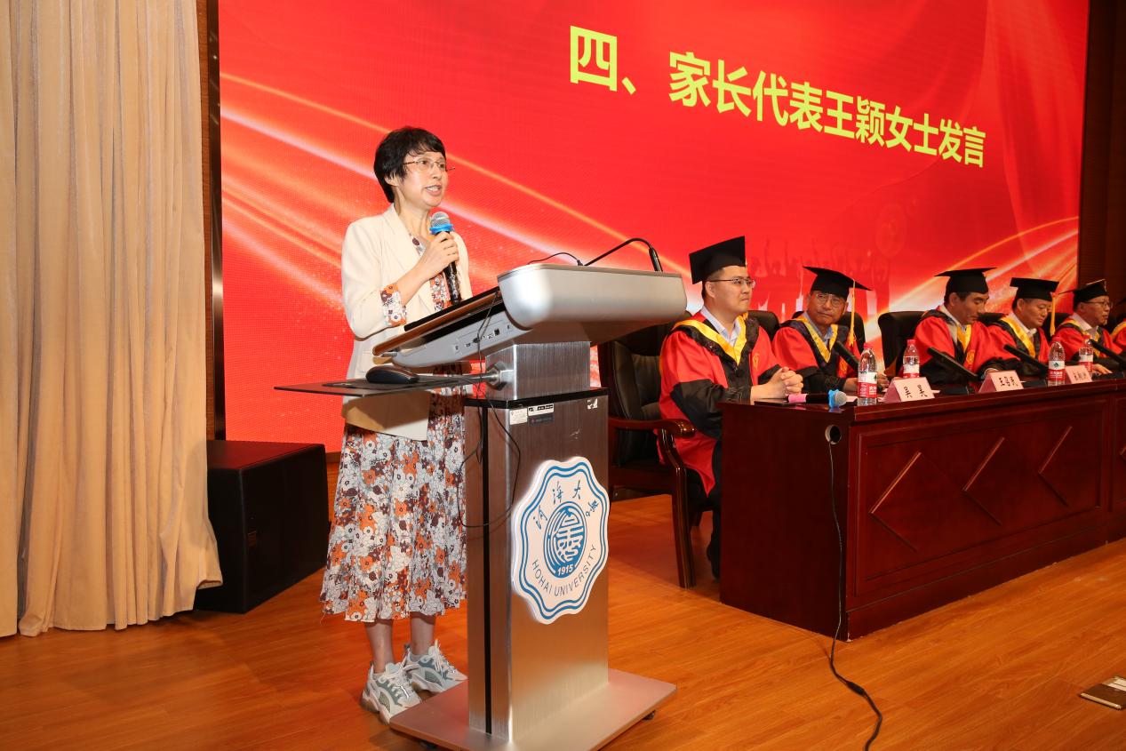 江苏省优秀毕业生李舒馨作为研究生代表回顾了三年科研生活的的点点滴滴,表达了对校园生活的怀念、对师长的感激以及对母校的祝愿。她表示,作为海洋学子,今后一定牢记恩师教诲,铭记母校校训,传承先辈精神,从感恩出发,从谦卑做起,认真做事,踏实做人。“一入河海,泽润四载。”本科生毕业生代表吴梦霞表达了对母校的感激之情,她总结道,青春是人生中最美好的年华,青春之美,美在奋斗与收获,美在遗憾,美在希望与征途,青春将永刻在岁月里,化成一股温暖的力量,让前行的路因回忆而充满无限阳光。