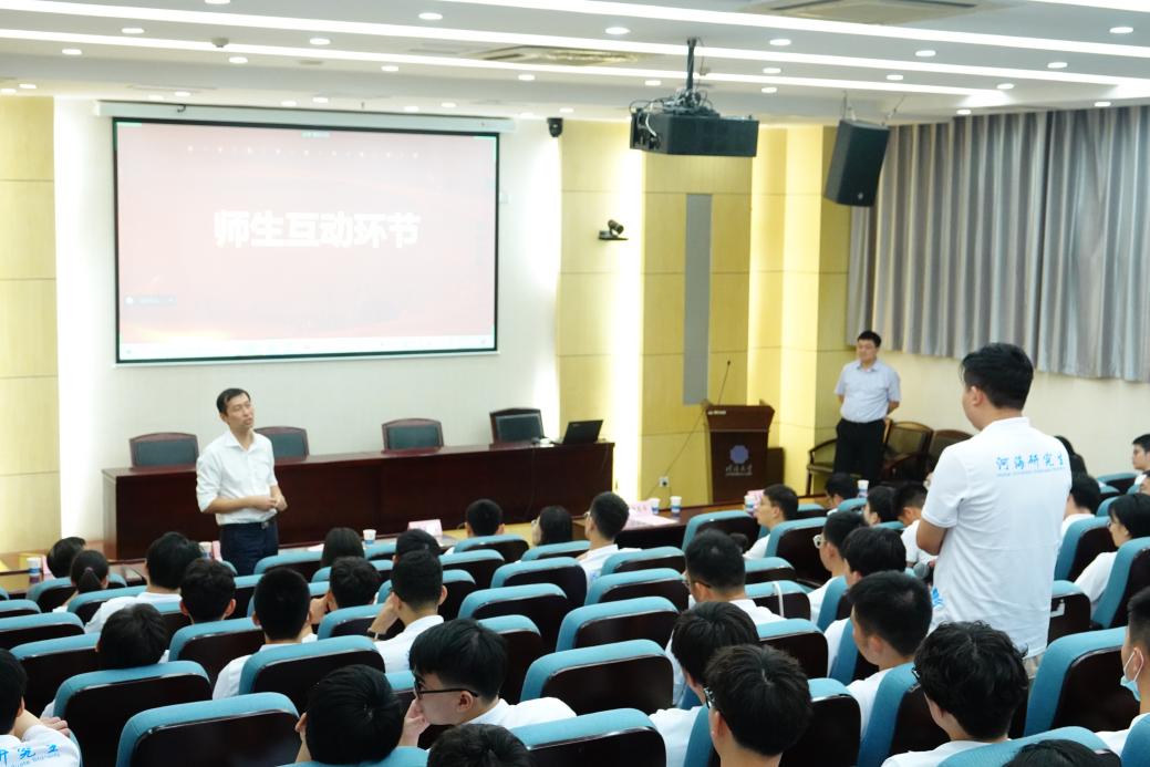 冯涛副院长介绍了学院研究生培养和教学情况。对培养方案和目标、学制年限、学分要求、论文要求、管理规定及奖助学金等内容做了重点介绍。在如何安排科研生活方面,他提出三点建议:一要认真上好每一节课;二要牢牢把握时间;三要学会交流与合作。