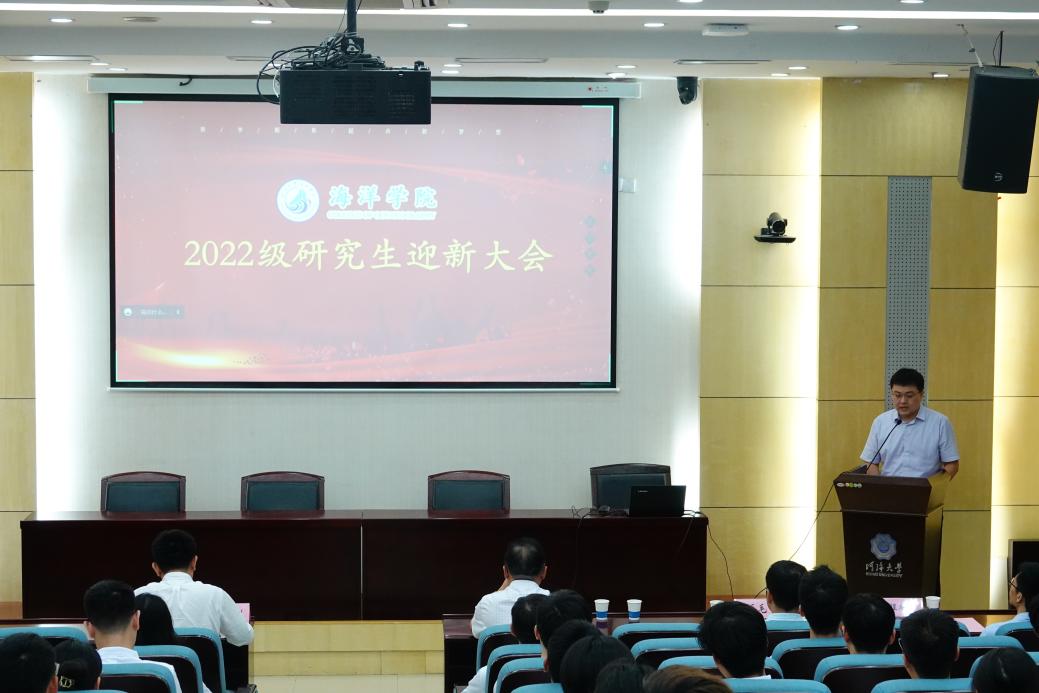 金秋送爽,齐聚海洋。9月3日晚,娱乐城 2022级研究生迎新大会在西康路校区闻天馆113报告厅举行。娱乐城 党委书记胡忠华、院长宋翔洲、副院长王毛毛、副院长冯涛、各所所长、副所长、研究生辅导员及2022级全体研究生新生参加此次会议,因疫情暂缓返校的新生在线上同步参与。大会由学院党委副书记吴昊主持。