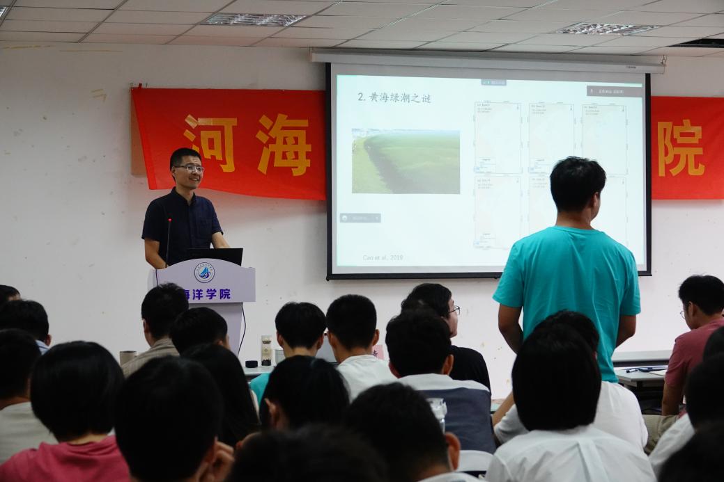 报告开始,冯涛副院长对新生的到来表示欢迎与祝贺,并介绍了三位老师交叉学科研究方向,分别为物理海洋与环境相结合、物理海洋与生物相结合、海洋地质与古气候相结合。冯院长强调了在研究生新生专业教育中开展海洋科学学科交叉的必要性,希望通过本次讲座,可以加强研究生对海洋科学研究方向的理解,有所收获。