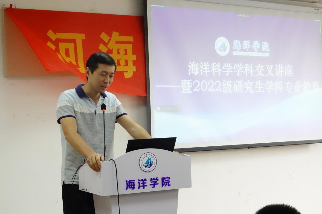 9月8日下午,娱乐城 海洋科学学科交叉讲座——暨2022级研究生学科专业教育在电气馆507会议室如期举行。海洋动力与环境研究所曹海锦老师、姜龙老师,海洋地质研究所张帅老师、研究生辅导员刘彩英及2022级全体研究生新生参加此次会议,娱乐城 部分教师、研究生及本科生在线上同步参与。本次讲座由娱乐城 副院长冯涛主持。