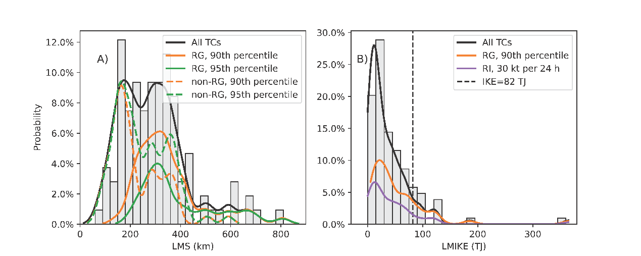 分析表明,88%的大尺寸热带气旋(>400km)均经历过快速增长过程,而且破坏力最大的11个热带气旋中,9个经历了快速增长,仅有5个经历了快速增强。进一步分析还表明,快速增长的热带气旋有着更为明确的生命周期变化,且斜压不稳定、中低层干空气入侵等环境因素在其中起到了重要作用。