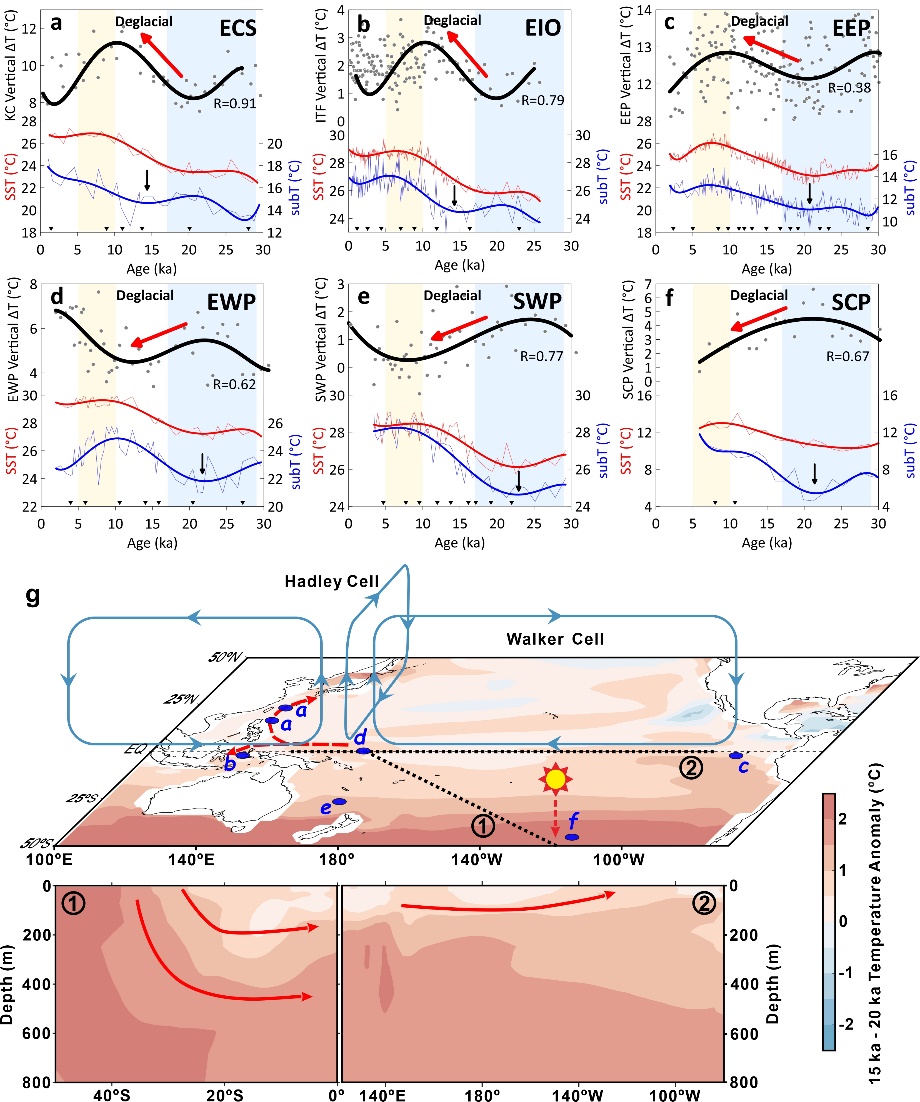 2022年9月17日,娱乐城 娱乐城 张帅博士与合作者撰写的题为“Thermal coupling of the Indo-Pacific warm pool and Southern Ocean over the past 30,000 years”的论文在国际知名刊物《Nature Communications》上发表。该论文通过集成印太海区海温数据(图一)及气候瞬变模拟分析,揭示了全球变暖中暖池与南大洋热耦合的关键作用。