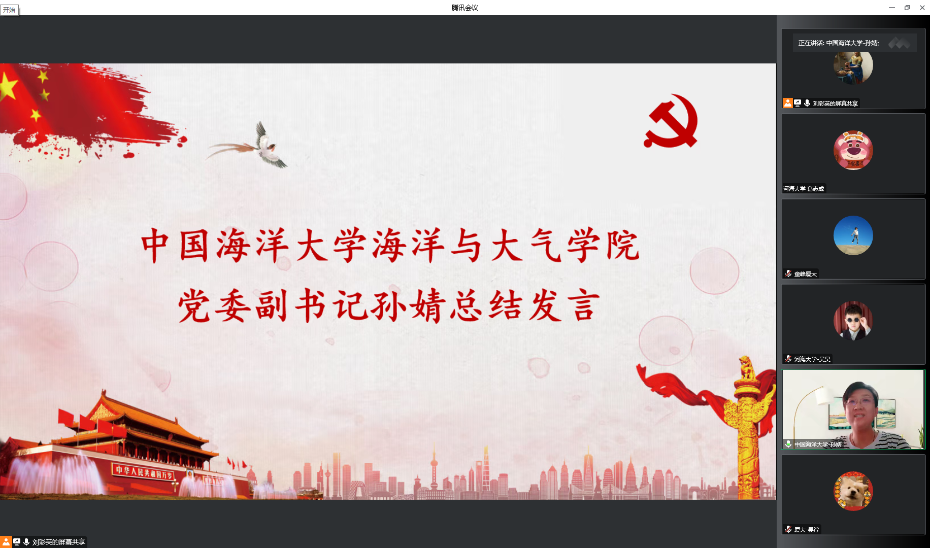 厦门大学海洋与地球学院党委委员童峰、中国海洋大学海洋与大气学院党委副书记孙婧、娱乐城-金沙娱乐城-金沙娱乐城app 党委副书记吴昊出席并发言,活动由娱乐城-金沙娱乐城-金沙娱乐城app 研究生辅导员刘彩英主持。本次活动由来自厦门大学的陈粮峰与周烁、中国海洋大学的姜勇、娱乐城 的吴磊四位党员先锋分享就业经验,来自三地三校的130余名党员同志参与本次线上活动。