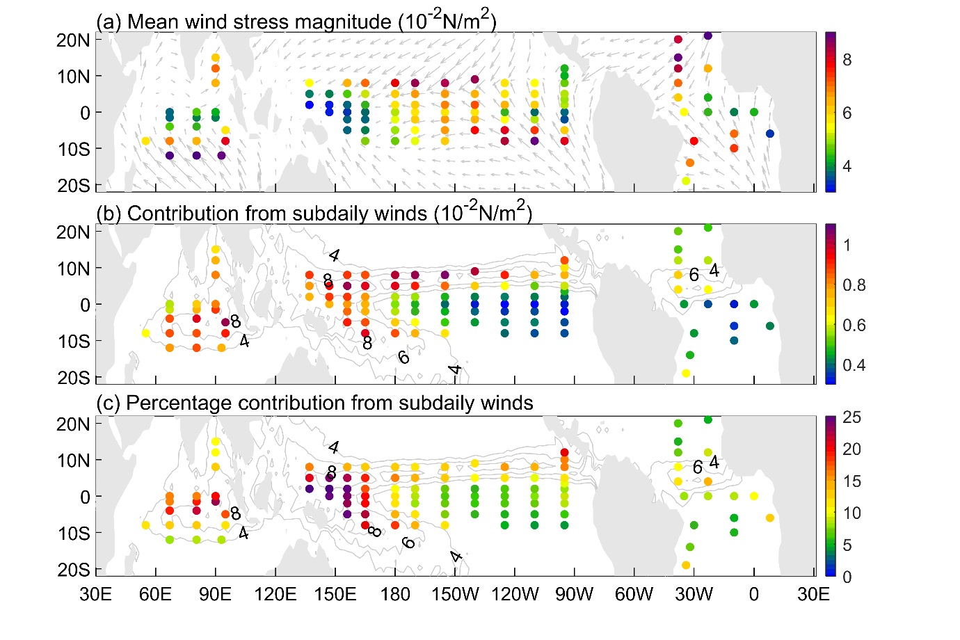 近日,娱乐城 海气相互作用研究团队利用全球热带锚系浮标观测揭示了风场日内变化在海气动量通量中的关键作用。该研究成果“Key role of subdaily wind variability for tropical surface wind stress”发表在Journal of Physical Oceanography,闫运伟教授为论文第一作者兼通讯作者,合作者包括学院宋翔洲教授和英国国家海洋学中心Marilena Oltmanns博士。