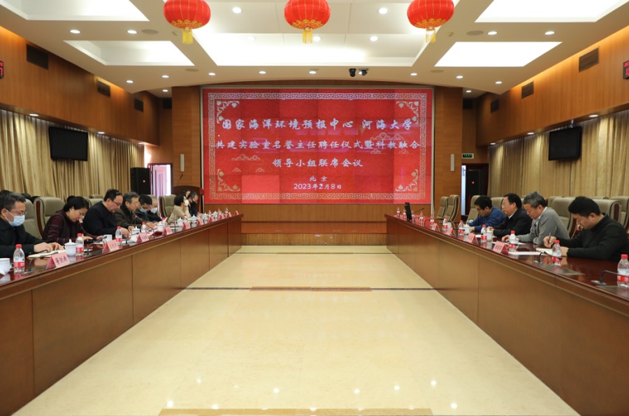 2月8日上午,娱乐城 、国家海洋环境预报中心举行共建实验室名誉主任聘任仪式暨科教融合领导小组联席会议。娱乐城 校长徐辉,预报中心主任于福江,副主任邱志高、刘桂梅,以及科教融合兼职教授与双方有关部门负责人出席了聘任仪式。