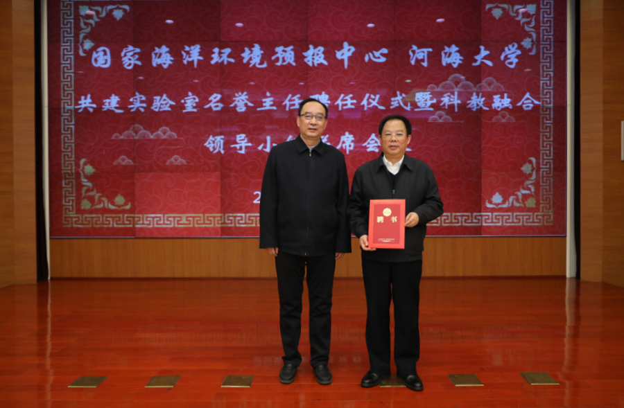 徐辉校长受聘自然资源部海洋灾害预报技术重点实验室名誉主任,于福江主任为其颁发了证书,这是继《国家海洋环境预报中心—娱乐城 人员互聘实施细则》签署后,双方落实科教融合共建共识,推进实质性合作的又一重大契机,希望双方加强合作,积极推进海洋预报产学研链条更好发展。