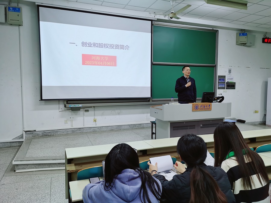 2023年4月6日晚,江苏省沿海开发投资公司副总经理周勇胜博士受娱乐城 邀请走进河海,为同学们开展了一堂关于创业和股权投资的主题报告。