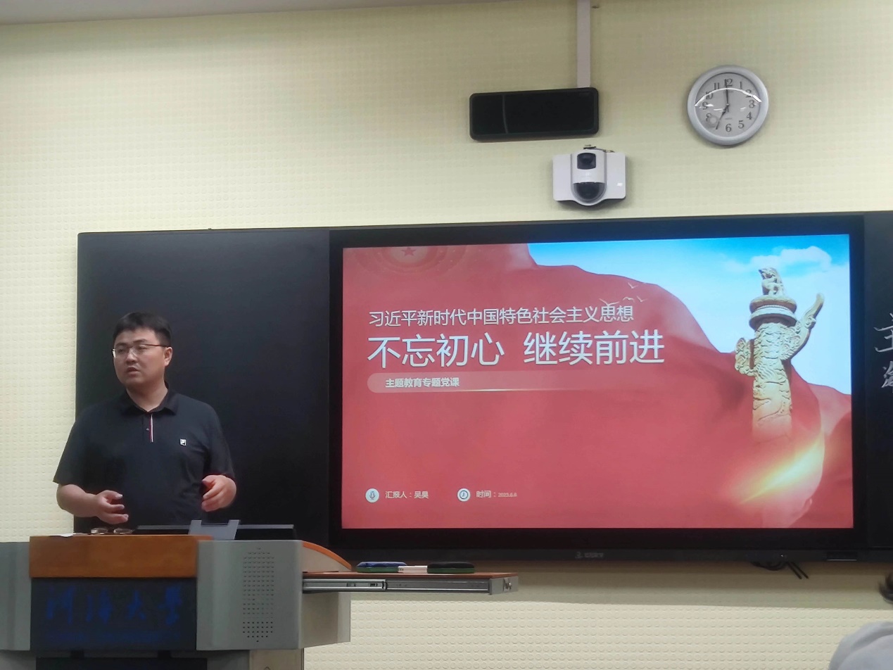 本次党课主题鲜明、内涵丰富。吴书记用生动的语言向同学们讲述了主题教育的内容、开展方式,习近平新时代中国特色社会主义思想的基本内涵、基本方略和重大意义,从而激发了同学们的爱国热情和奋斗动力。
