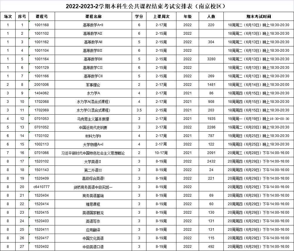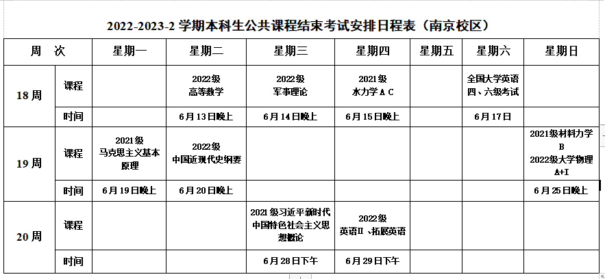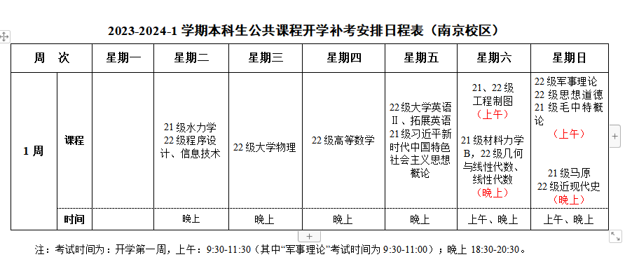2022-2023-2学期本科生公共课程结束考试及2023-2024-1学期开学补考日程安排