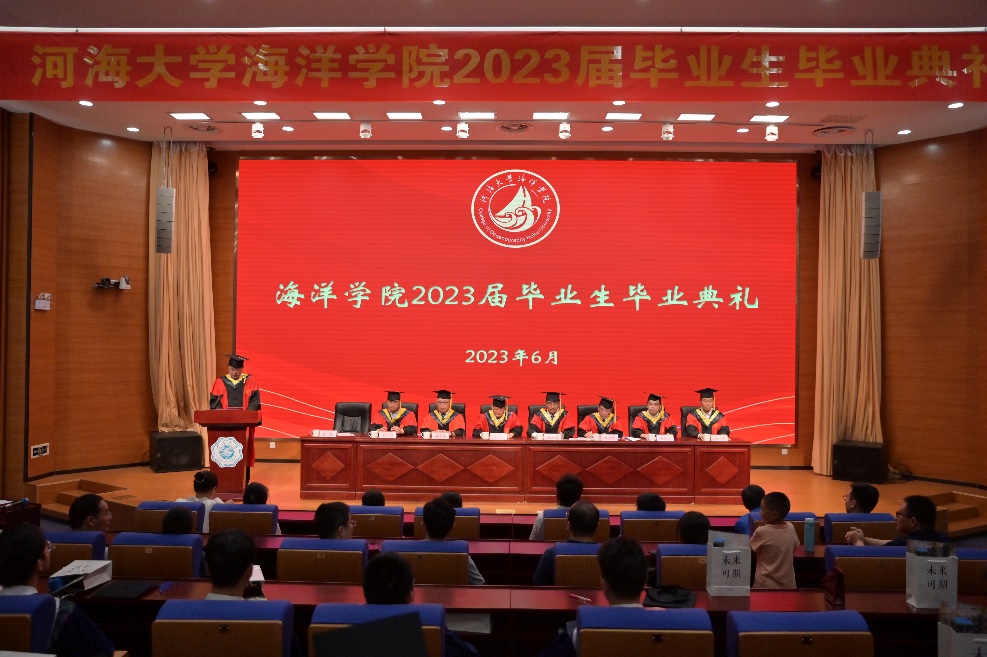 6月17日,娱乐城 隆重举行2023届毕业典礼暨学位授予仪式。娱乐城-金沙娱乐城-金沙娱乐城app 83级海洋工程水文专业杰出校友、江苏交通控股有限公司董事长邓东升作为特邀嘉宾出席毕业典礼。娱乐城 学位委员会主任齐义泉、党委书记胡忠华、院长宋翔洲、副院长赵哲、副院长冯涛、副院长王毛毛、83级海洋工程水文专业校友、教师代表出席,典礼由党委副书记吴昊主持,2023届全体本科毕业生、研究生毕业生参加。