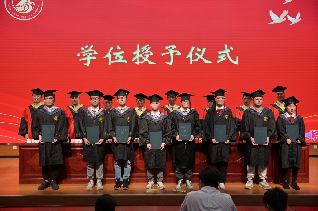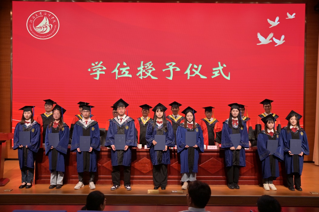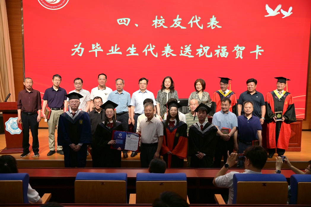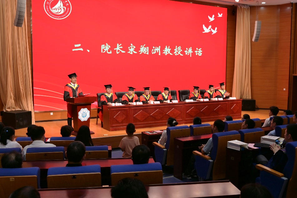 院长宋翔洲在致辞中向毕业生表示热烈的祝贺和美好的祝愿,并对毕业生提出几点期望,一是学会学习,提高格局,要勤于学习,善于学习,乐于学习,在学习过程中,提高格局。二是学会坚持,接受苦难,志存高远,百折不挠。三是学会思辨,接受不同,遵循和而不同的君子处事法则,接受不同,坚持真理。希望同学们在新时代的海洋强国梦征程中,有东临碣石以观沧海的气势,扬帆远航,奋勇争先。