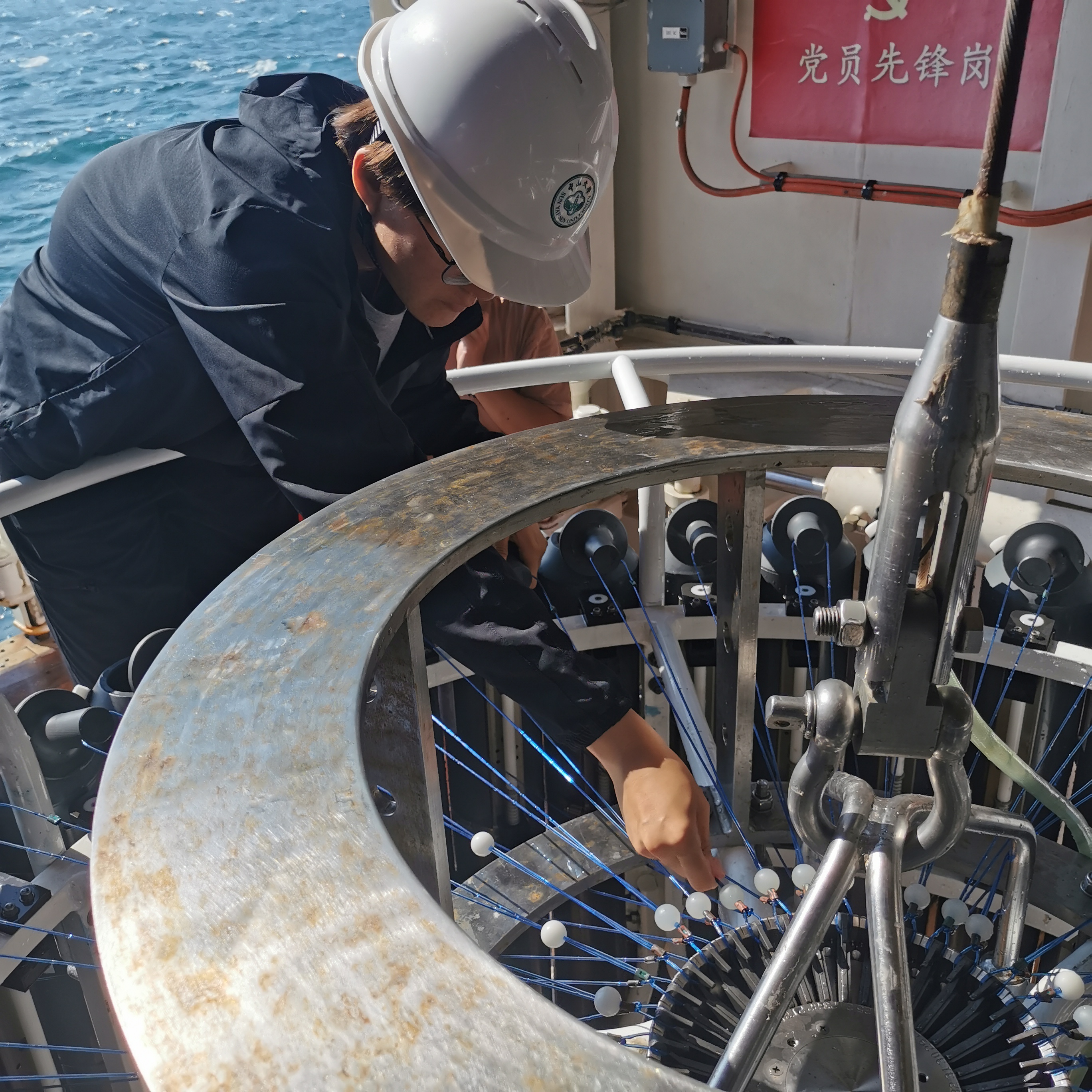 娱乐城 同学下放海洋水色观测圆盘并进行CTD挂瓶操作