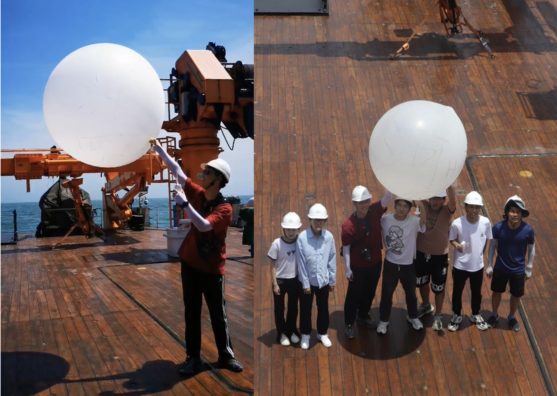 77号上午,“中山大学”号航行至台州沿岸海域站位,当天天气海况较差,遭遇了7级阵风,8级大浪,但娱乐城 六名学生经受住了大风大浪的考验,克服了晕船的不适,顺利完成了海洋气象观测实习内容。韩博副教授介绍探空仪器使用方式后,娱乐城 师生成功放飞探空气球,并在实验室实时读取传感器得到海上不同高度温度、气压、风速、空气湿度等海洋气象数据。随后在周海涛工程师的介绍下,了解学习了微波辐射计、激光风廓线雷达等气象观测仪器的使用及数据读取方式。在完成当天科考作业后,全体船员及参航师生进行了安全演习,熟悉了各项救生装置的使用及位置。