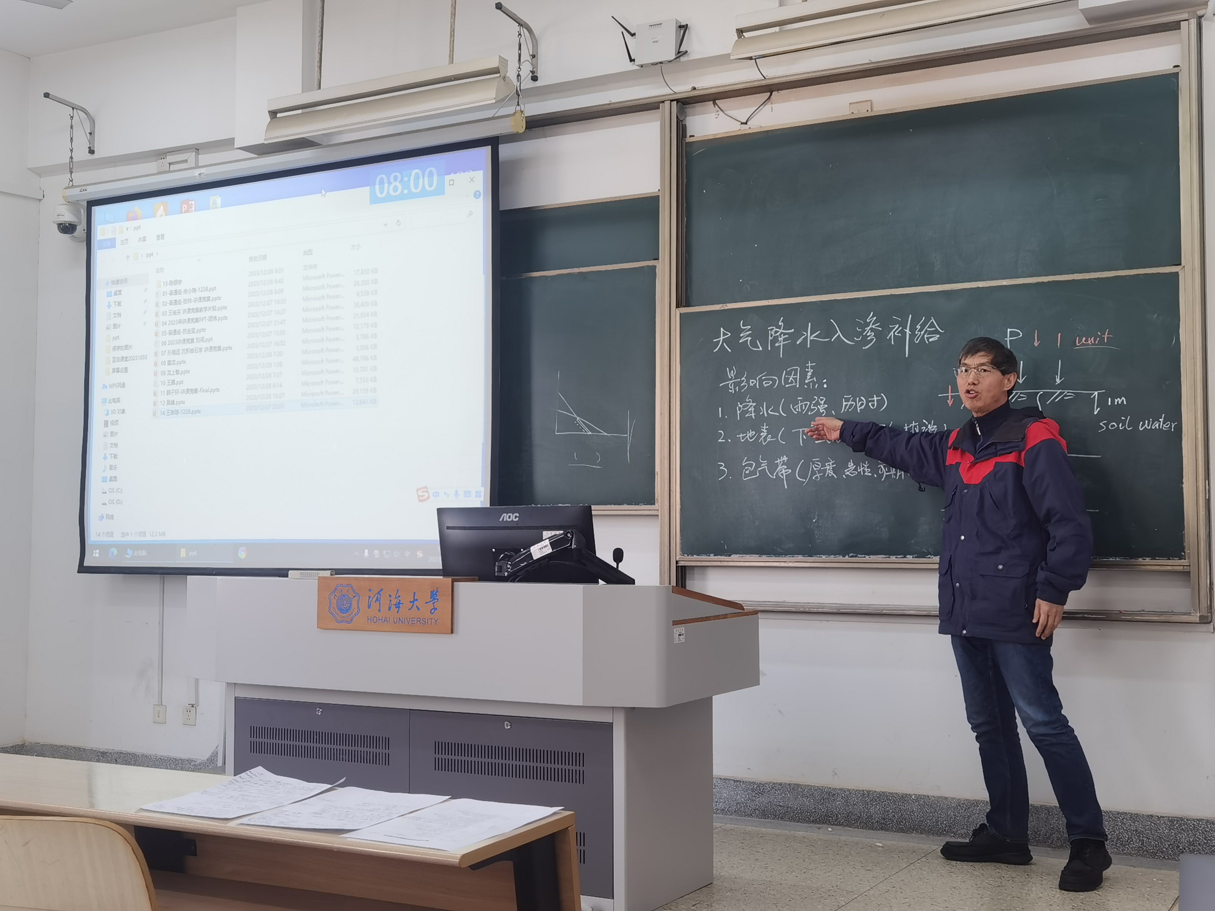 比赛结束之后,束龙仓教授以《大气降水入渗补给》为主题,向现场观摩的各位老师展示了一堂优秀示范课,针对如何组织课程内容、抓住课程核心知识点、板书与讲课内容结合等方面给出了精彩的演示,为本次讲课竞赛画上了圆满的句号。