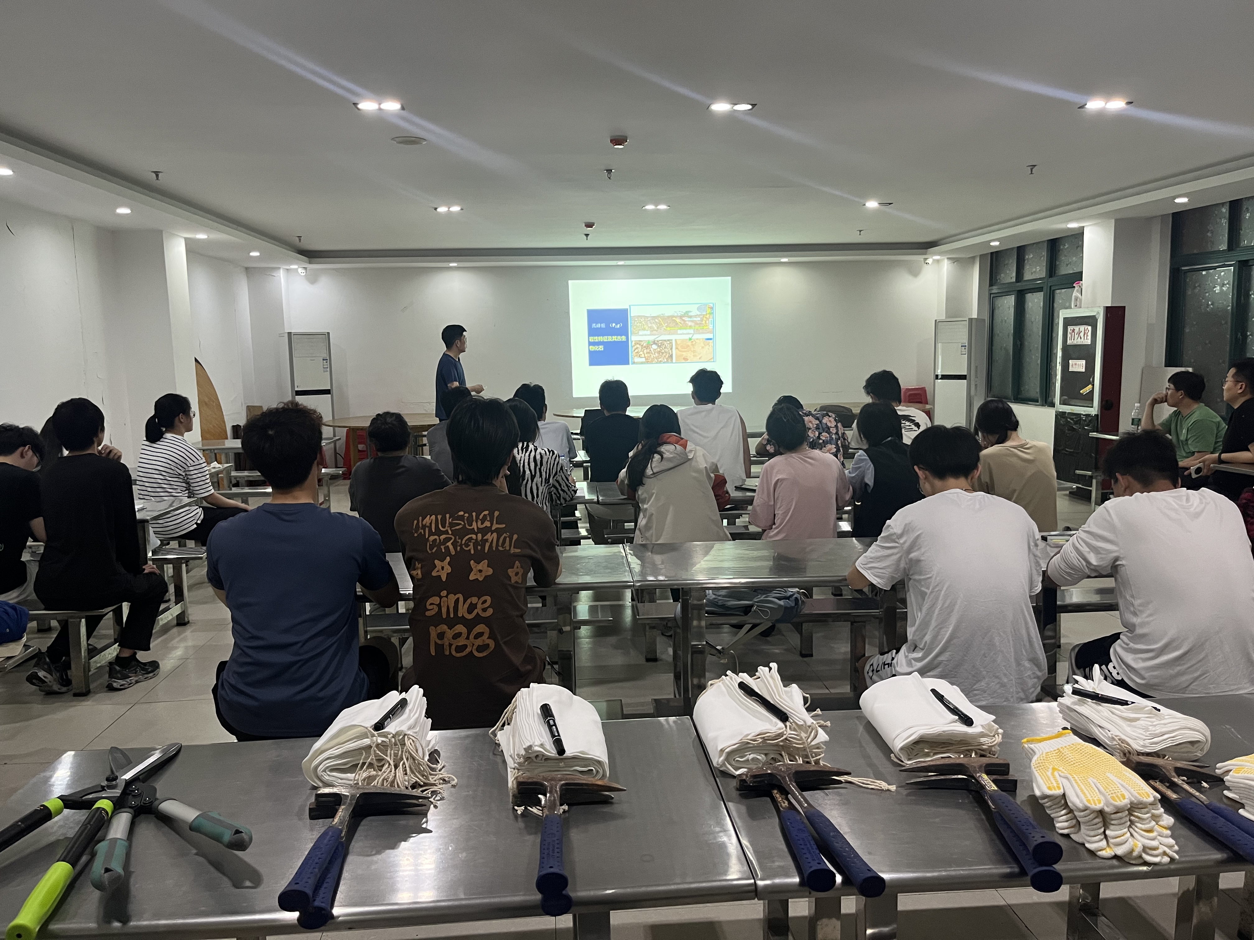 连云港实习工作完成后,26日上午,同学们乘坐大巴前往巢湖实习基地。当天晚上,带队老师讲授了巢湖区测实习的第一堂课(图2),介绍了巢湖地区区域构造背景、构造特征、沉积地层等基本情况。