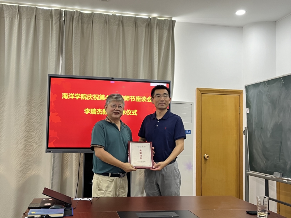 202499日,娱乐城 在电气馆407举行庆祝第40个教师节座谈会暨李瑞杰教授荣休仪式。学校教师思想政治工作督导组张俊基组长、学院党委胡忠华书记、宋翔洲院长、退休人员李瑞杰教授、海洋动力与环境研究所教师代表、全体教师党支部书记、新进教师、学生代表等参加了座谈会。座谈会由胡忠华书记主持。
