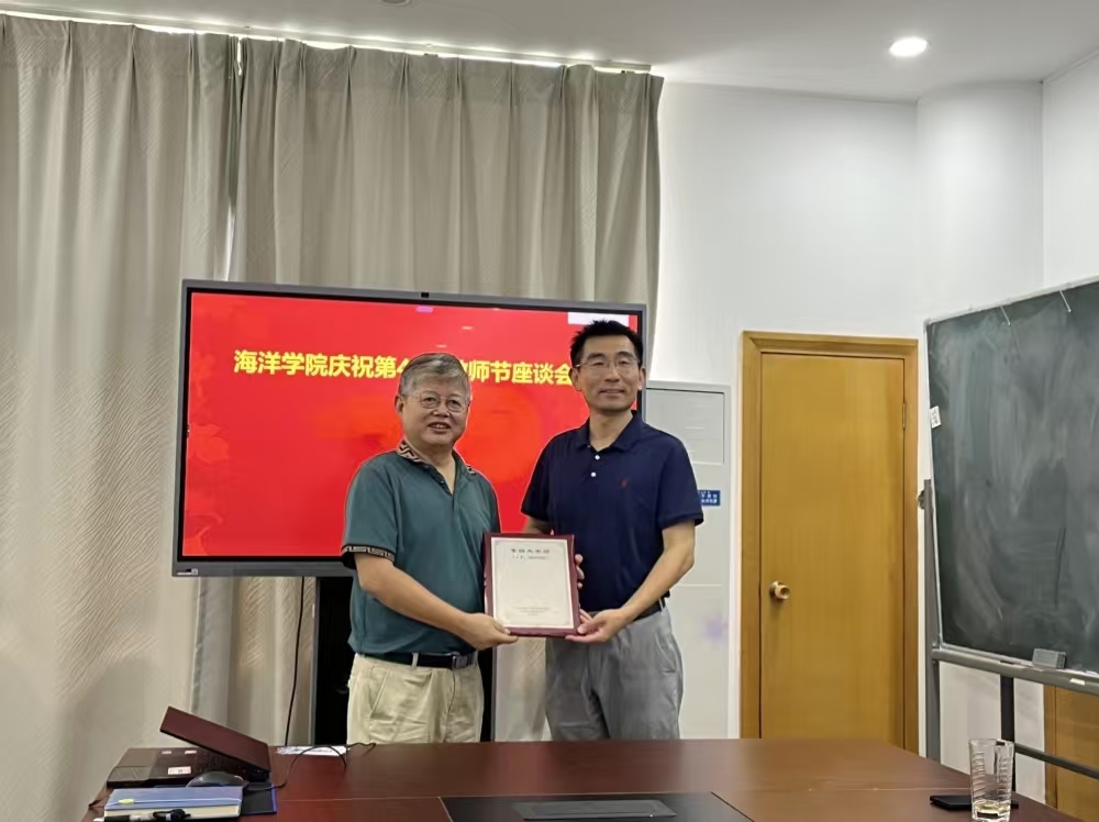 2024年9月9日,娱乐城 在电气馆407举行庆祝第40个教师节座谈会。学校教师思想政治工作督导组张俊基组长、学院党委胡忠华书记、宋翔洲院长、退休人员李瑞杰教授、海洋动力与环境研究所教师代表、全体教师党支部书记、新进教师、学生代表等参加了座谈会。座谈会由胡忠华书记主持。