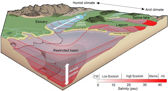 Figure: Spectrum of salinity facies that can be identified using elemental salinity proxies. Image from Algeo et al. (2025), News and Views: Are elemental salinity proxies worth their salt? Journal of Earth Sciences.