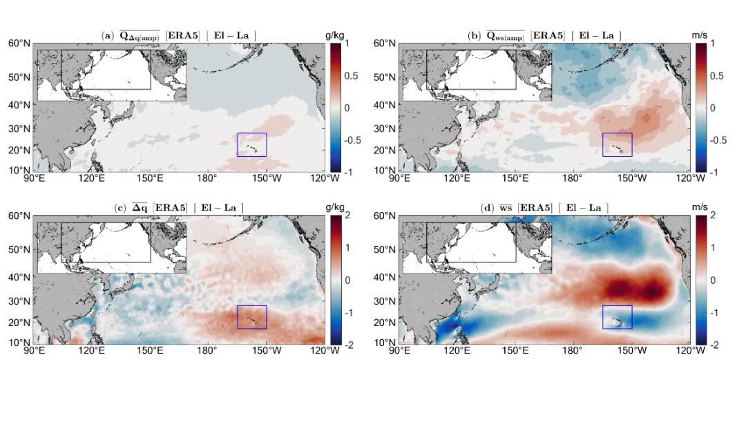 Sun, Y., X. Song*, Y. Yan and C. Wang, 2025: El Niño modulation of subdaily air‒sea latent heat flux variability in the Hawaiian Islands, Journal of Climate, //doi.org/10.1175/JCLI-D-25-0177.1