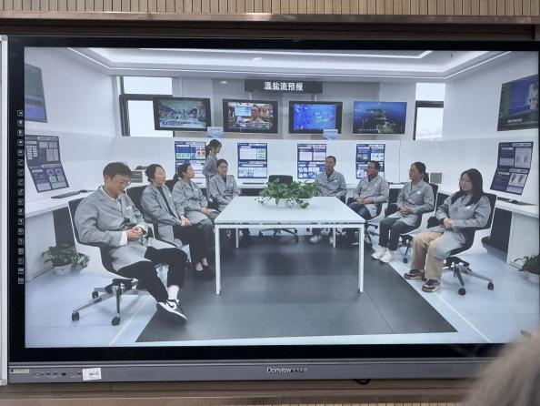 在国家海洋环境预报中心主持人张达迅的引领下,同学们通过直播镜头“云端”参观了预报中心新建的业务平台。气象预报室、气候室、极地室等科室的资深专家分别从海洋环境监测体系、风暴潮与海浪预警技术、海洋应急响应等业务对海洋事业发展的贡献展开了专业讲解。专家们结合自身科研与业务实践,系统介绍了现代海洋预报的业务体系、核心技术及其在航运安全、防灾减灾和气候变化研究等领域的关键应用。专家团队用通俗易懂的语言巧妙化解了专业技术难点,悄然叩开了同学们探索海洋奥秘的心扉。